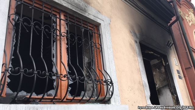 Підпал будівлі Угорського культурного товариства в Ужгороді 4 лютого 2018. Фото: Еспресо.tv