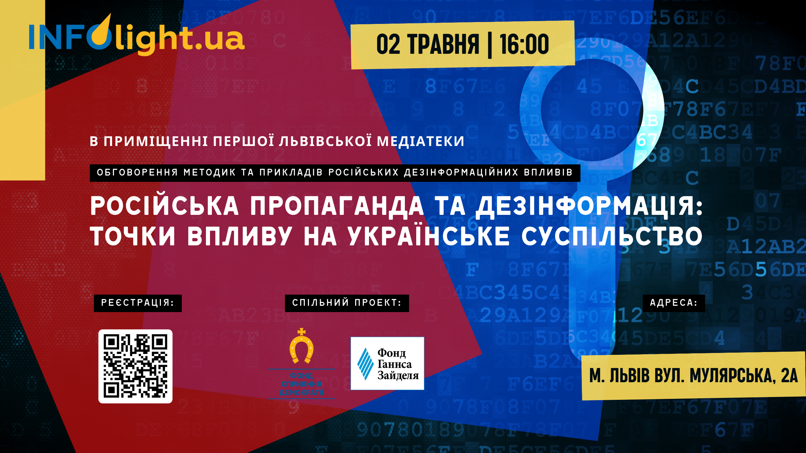 2 травня в приміщенні Першої Львівської медіатеки відбудеться обговорення методик та прикладів російських дезінформаційних впливів, як на зазначені категорії, так в на українське суспільство в цілому.
