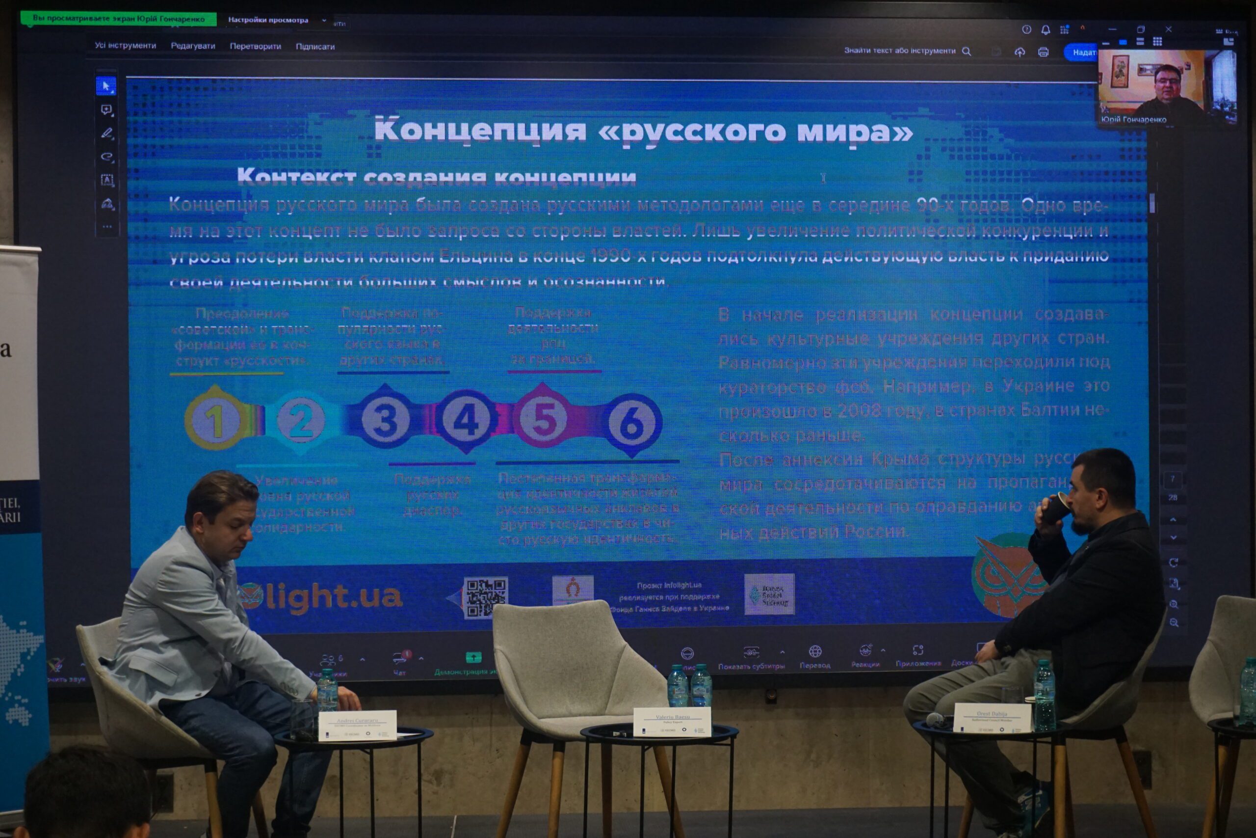Для учасників з Молдови, Грузії, Румунії та інших країн-сусідів України було презентовано доповідь “Машина російської експансії: доктринальний, інформаційний та зовнішньополітичний аспекти”.